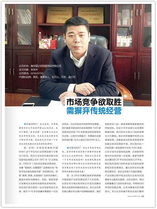 在《中國BABY》2月賀歲刊報導的《色虎软件APP下载競爭,勝在變革——皇家孕嬰,市場競爭欲取勝,需掘棄傳統經營》一文中,皇家孕嬰總經理吳東升分享了色虎软件APP下载的經營理念、發展曆程與遠大願景。